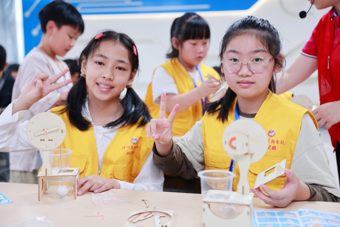 智启创客,体验古代科技。为让青少年沉浸式探寻中国古代科技,展览配套设置“中国古代科技”系列研学课程。全国科普日期间,“滴漏知时”创客工坊正式开课,课程围绕中国古代铜壶滴漏展开。铜壶滴漏即漏壶,中国古代的自动化计时装置,又称刻漏或漏刻。铜壶滴漏是中国古代重要的计时工具之一,它通过水的滴漏来计量时间,体现了古代劳动人民的智慧。通过了解古代铜壶滴漏的原理,并动手制作简易水滴时钟,在实践中学习了古代智慧,锻炼了动手能力和团队协作精神。