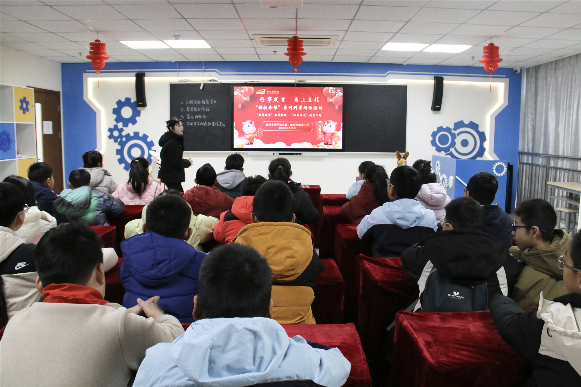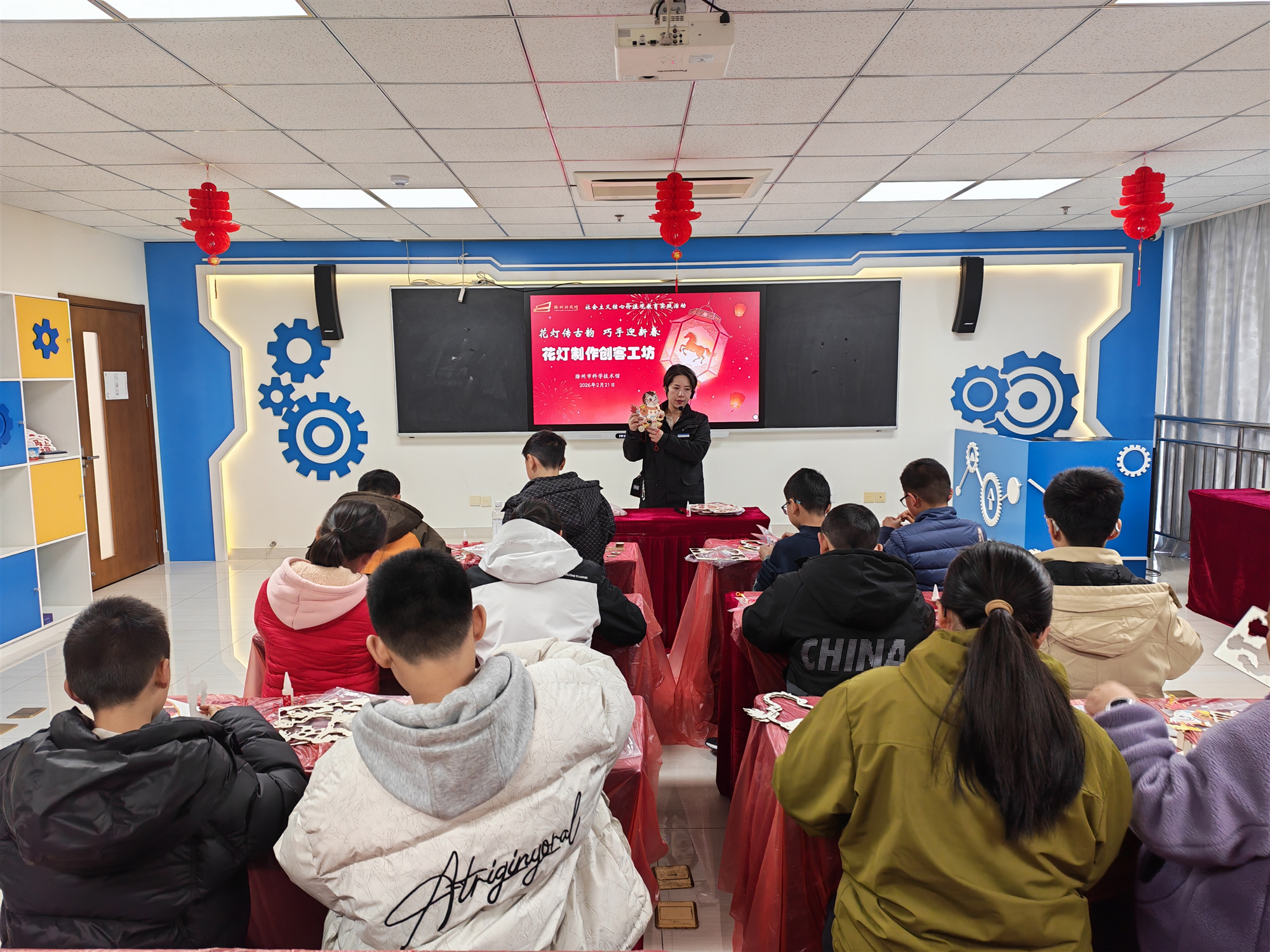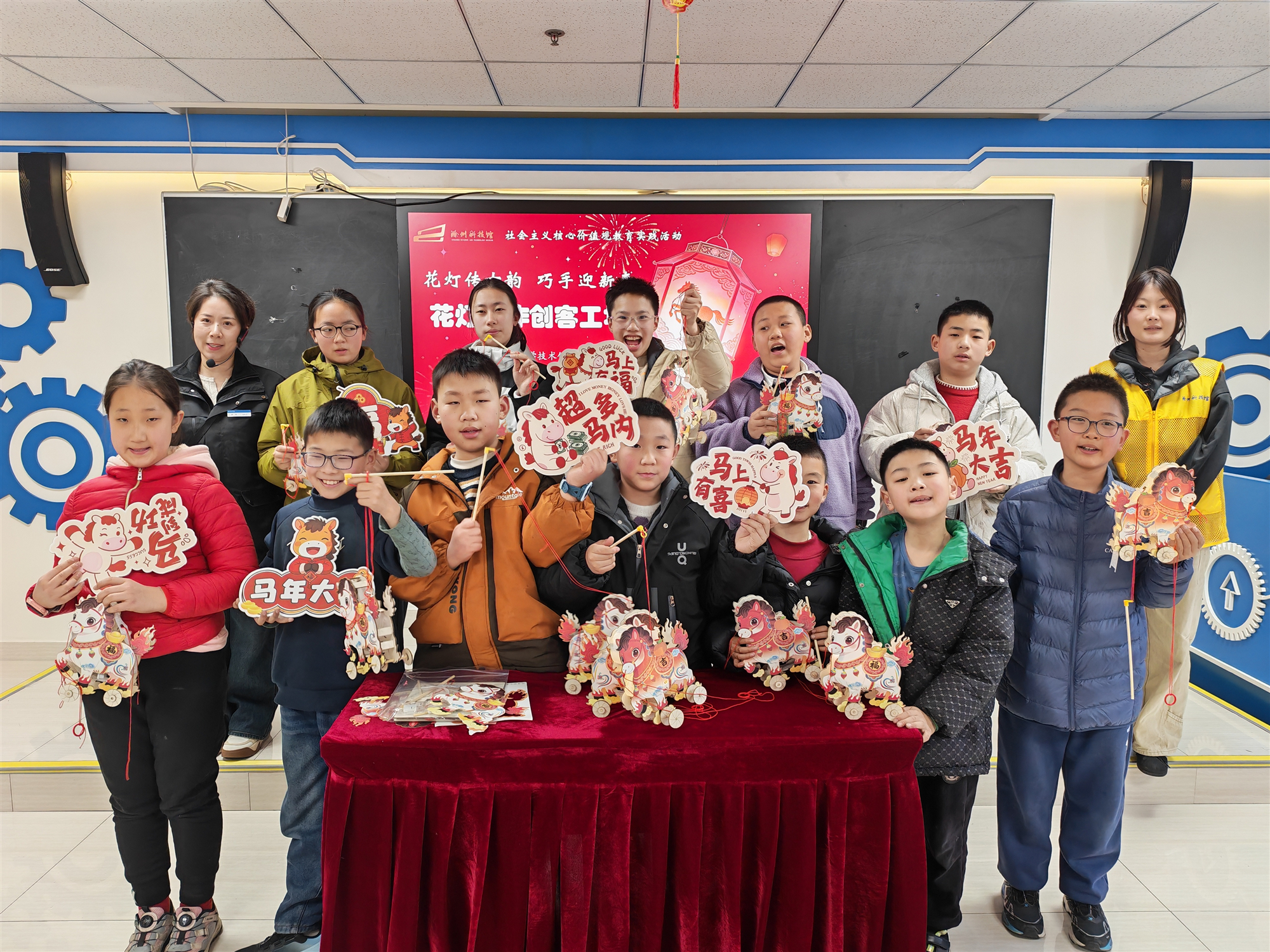 “创客工坊”探索启智。先后开展“花灯传古韵 巧手迎新春”花灯制作、“剪纸绘新春 指尖传非遗”剪纸体验等创客教育活动,将科学知识和传统文化紧密融合,通过骨架搭建、图案设计、装饰点缀,制作精致的花灯;通过对折、镂空、裁剪等环节,在剪纸过程中体验对称之美、构图之巧,在实践中触摸传统技艺的温度,锻炼动手能力。此外,结合马年生肖主题,依托“馆校合作”平台,开展“以马为友”主题创客课程,以“与马交朋友”为主线,通过情境导入、线索分析、实验探究、互动体验等环节,引导学生理解马的行为语言,掌握与马相处的科学方法。滁州市实验小学、滁州市醉翁小学60余名学生参加活动。
